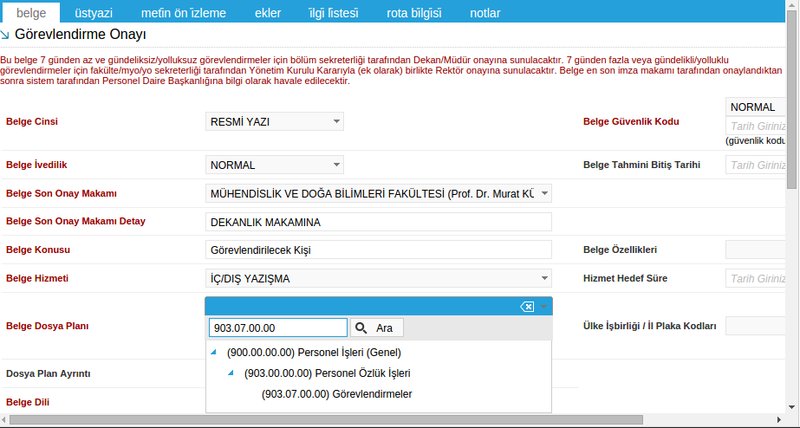 - Belge Dosya Planı: 903.07.00.00'dan uygun olan dosya planı