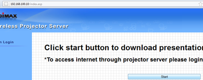 2. İnternet  tarayıcınızı açarak projeksiyondan ekrana yansıyan “192.168.100.10” wlan ip adresini giriniz  ve start tuşuna basarak programı indiriniz. Eğer tarayıcı adres çubuğuna ip adresini girip programı indirmek istemiyorsanız  en aşağıda bulunan  linkten programı indirebilirsiniz.